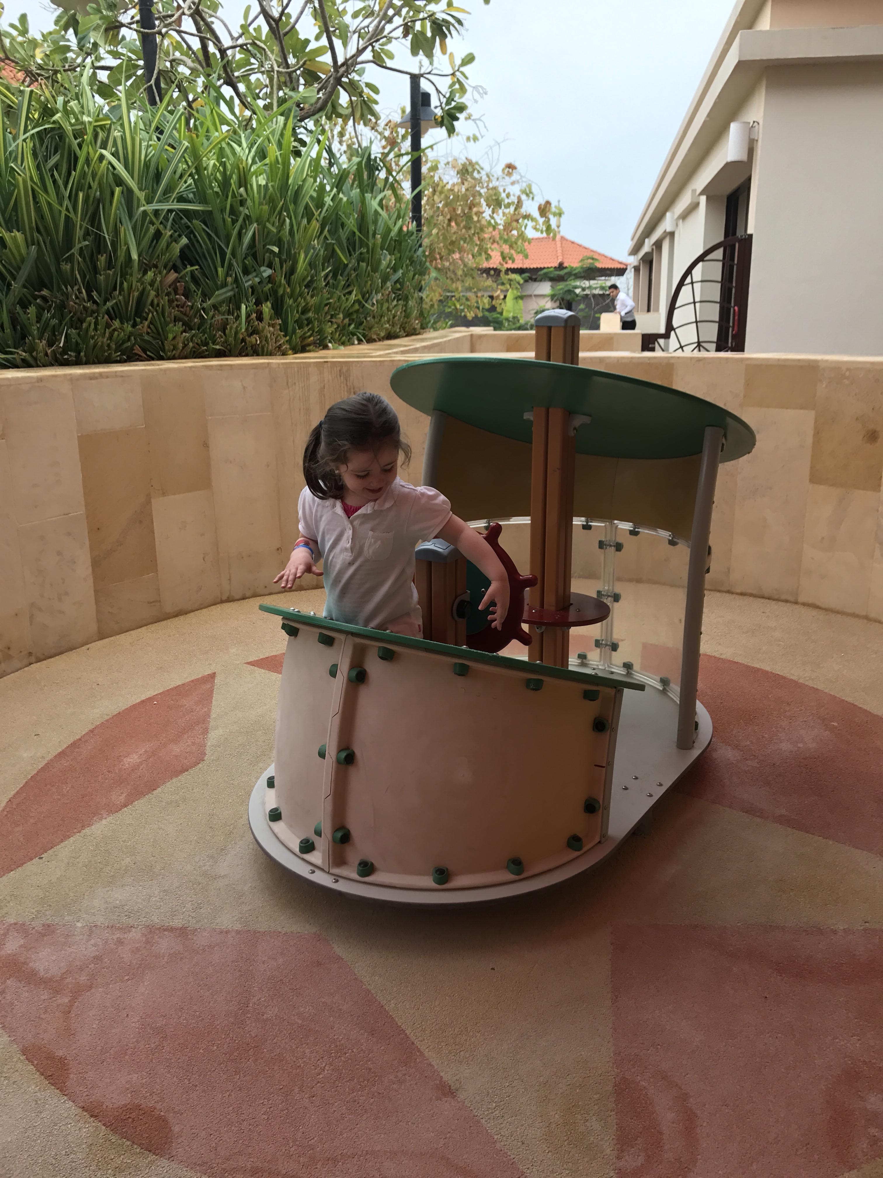 So a bit more about the hotel – it is truly beautiful. It’s inspired by Thai architecture and so it’s very low rise (quite unlike the majority of Dubai). You really feel like you’ve flown a lot further! There is a lovely selection of on-site restaurants offering great variety – Thai, Australian, Mediterranean (beach front restaurant) and the more standard half-board buffet. Breakfast is plentiful and offers something for everyone. All the dining options open up early in the evening so you can easily dine with children, high chairs are readily availiable and crayons and paper are given to all children. Each restaurant has a lovely child friendly menu (but that is also in keeping with the restaurant more generally).