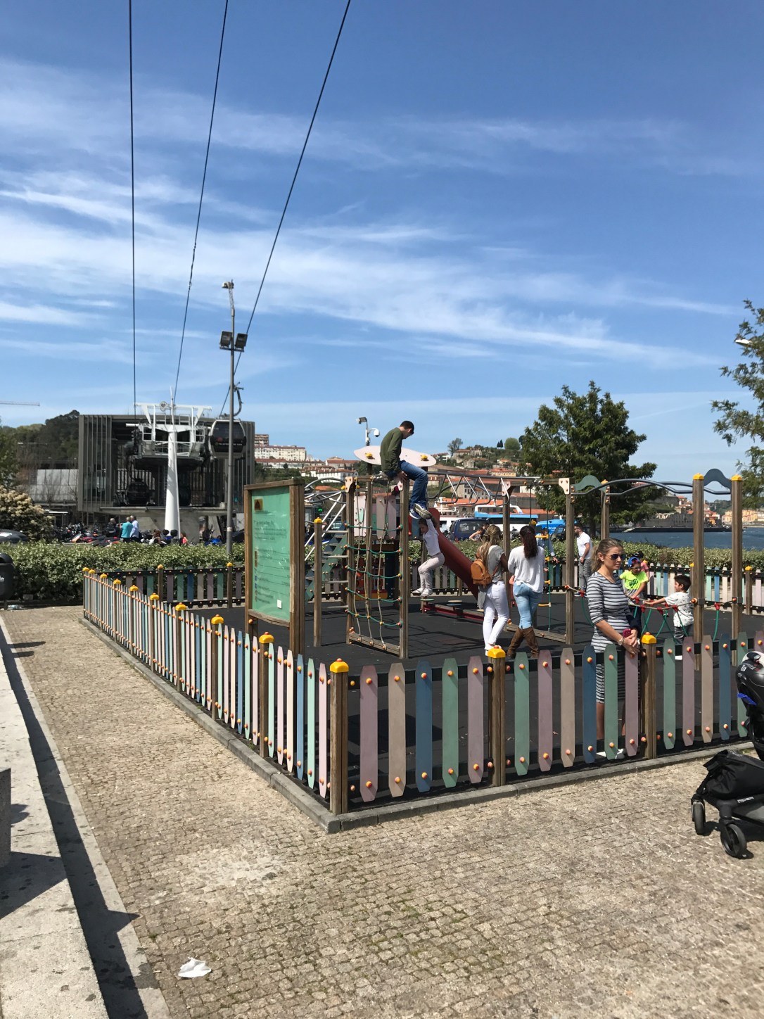 Back to Sandeman. My husband’s ancestors were related to Sandeman (his granny’s maiden name was Sandeman) so we have long wanted to visit the port house. We arrived and waited 10 minutes for a tour in English (there’s no option to just walk around you have to take an organised tour). The tour was not really suited to little ones. Our 3 year old was fine and enjoyed taking photos and came out discussing the differences between red and white wine (it’s never too early to start right?!?) but our 9 month old was restless from the start (its quite dark in the cellar). I ended up sitting in the bar (its a hard life!) feeding him cheese sandwiches while my husband and daughter finished the tour. I did enjoy the port tasting that came at the end of the tour so it wasn’t all bad! Some would say I had a result. I am led to believe that the tour was informative and pretty enjoyable. Just over the road from the port house, down towards the gondola station was a wonderful play park with spectacular views over Porto.