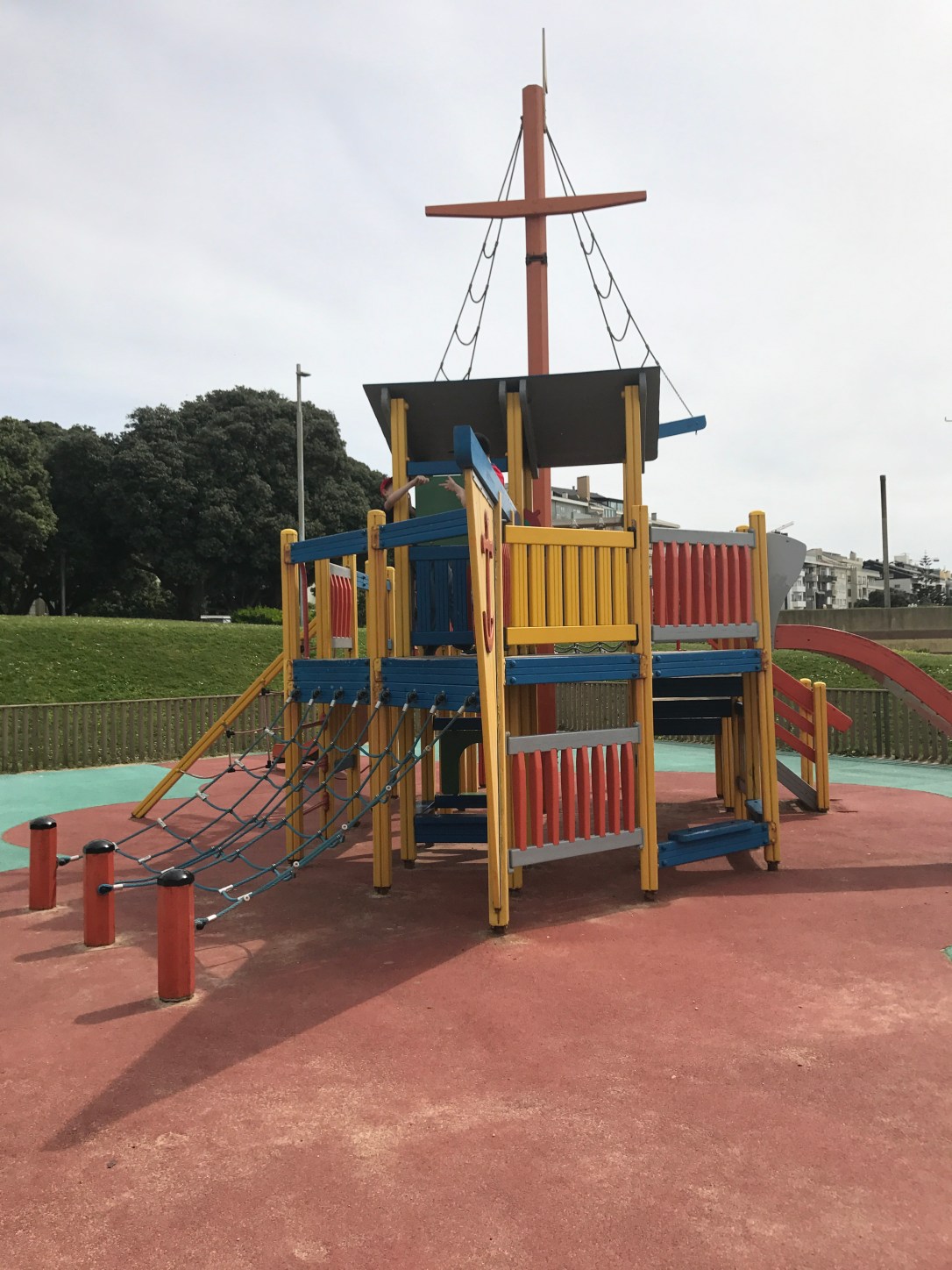On our last full day I fancied seeing another beach (I really do get restless seeing the same thing more than a couple of times when on holiday!). Molhe Beach was much harder to reach from our apartment (we ended up taking the yellow tour bus (more about that below! It was a nightmare!). This beach wasn’t as good for children as Matosinhos (in our view). The beach was far more rocky and there was therefore less space for playing (although great for climbing and rock pooling). It generally felt more tired and less well equipped. That said, we did stumble across a wondeful play park (next to a nice looking bar/restaurant) which our daughter absolutely adored – so it wasn’t a wasted trip!