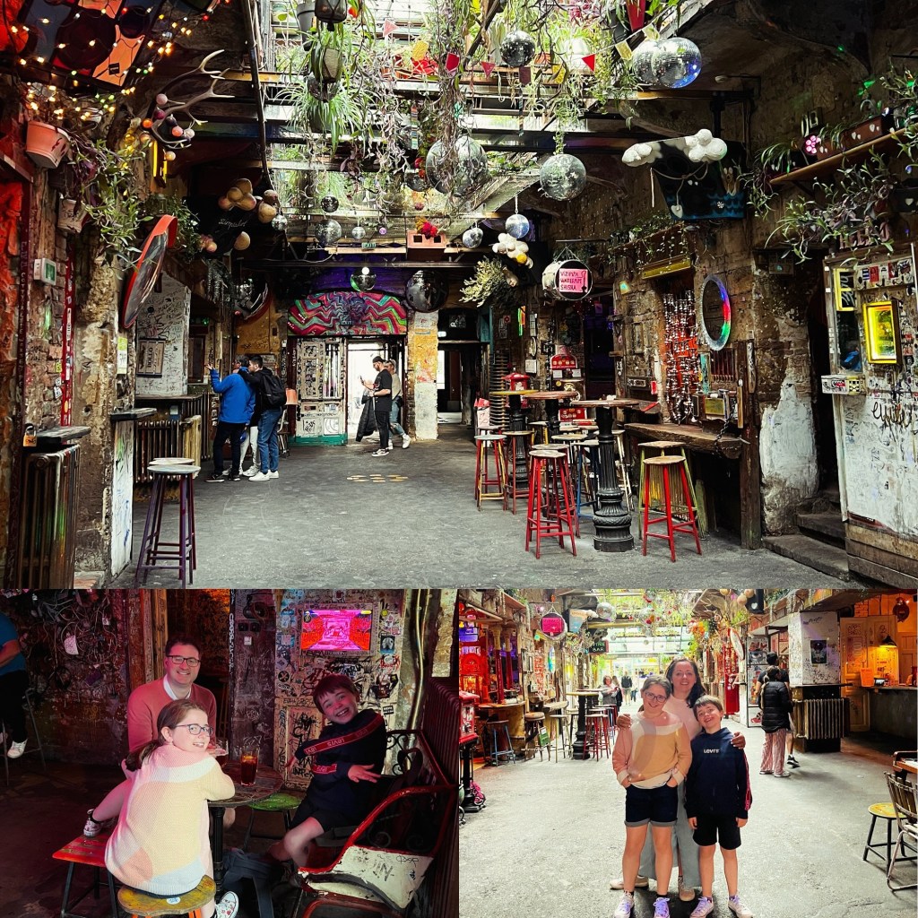 After an afternoon of playing (and now starting to flag) we jumped on the bus on route to Szimpla Kert (meaning Simple Garden) – the original ruin bar in the Jewish Quarter. Before leaving for Budapest I had read endless articles about whether you could take children to Ruin bars etc. We were there around 4.30pm and it was absolutely fine – they were both welcomed by the staff and it all felt very family friendly. Like all bars I’m sure it gets more rowdy in the evening but it felt very safe and family friendly during the day. The children loved looking around and soaking up the unique atmosphere, an atmosphere that comes partly from its location amidst ruins, but also from its quirky and chaotic decor.