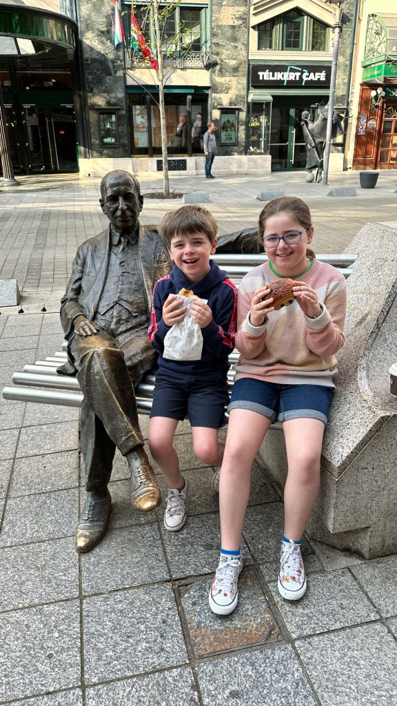 So, after breakfast we strolled down to the Parliament building in search of the ‘Shoes on the Danube’ – 60 pairs of cast-iron shoes placed on the edge of the Danube in memory of the hundreds of Budapest Jews who were lined up on the river bank, ordered to remove their shoes, and shot into the river. The memorial has shoes of all sizes, including children’s shoes. A harrowing sight, and perhaps not one you’d immediately think to take children to, but for us it’s always important to find ways to engage them in conversations that matter. The shoes are open to all and free to view. There are several memorials to the Jews lost in the Holocaust across Budapest. You can also visit the Great Synagogue (the second largest in the world).